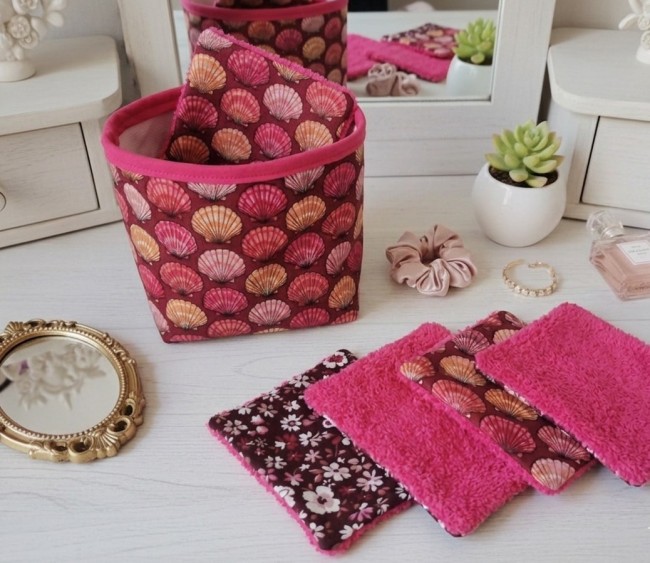 Lot de 12 lingettes démaquillantes et panier assorti - Fuchsia /rose