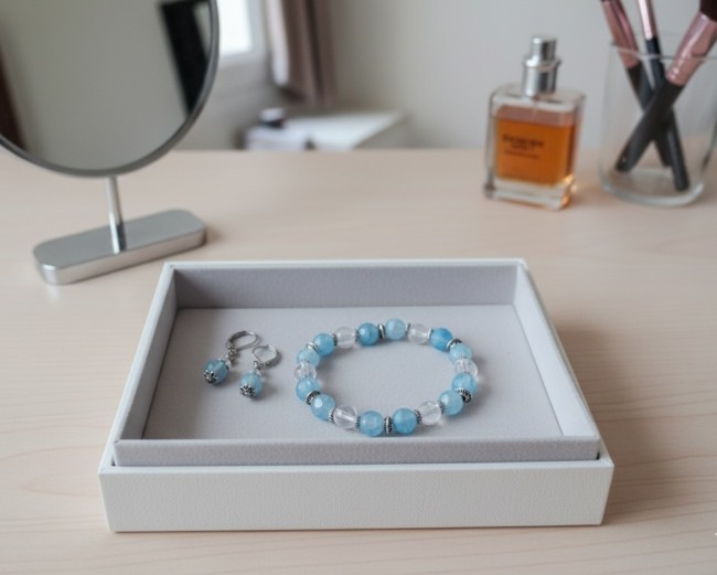 Parure bracelet et boucles d'oreilles bleu et argent mat