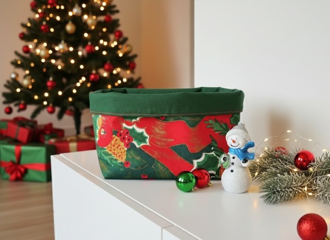 Panier tissu motif noël vert et rouge