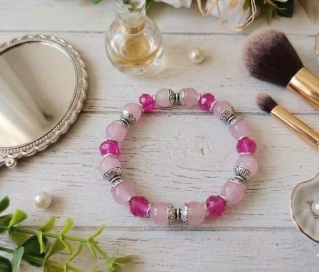 Bracelet fil élastique et perles en verre rose et fuchsia