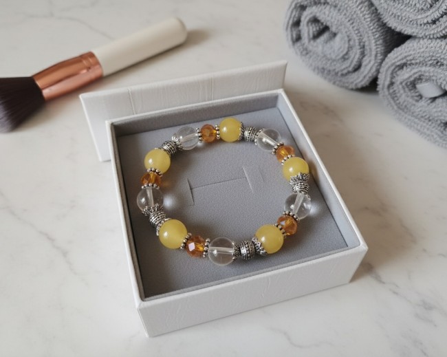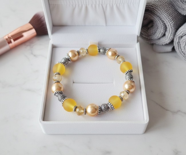 Bracelet perles tube incurvées couleur jaune et moutarde