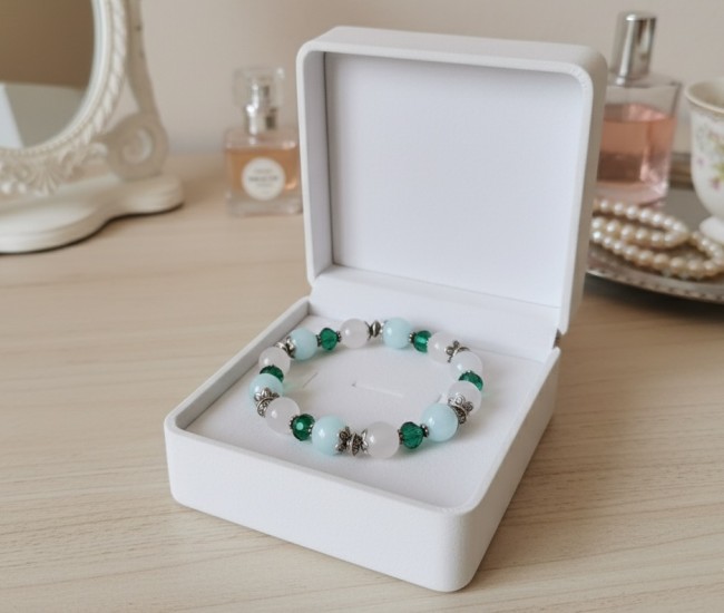 Bracelet fil élastique perles imitation jade et craquelé vert d'eau