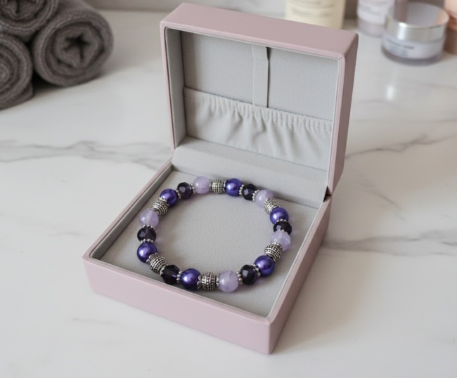 Bracelet perles en verre lilas et violet et apprêts argent mat