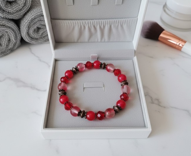 Kit bracelet fil élastique et perles en verre roses et rouges