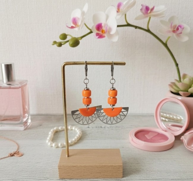 Boucles d'oreilles acier inoxydable et pendentif orange