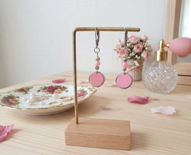 Boucles d'oreilles acier inoxydable argent mat et sequin rose