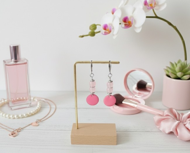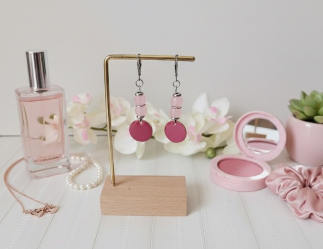Kit boucles d'oreilles acier inoxydable et perles en verre rose