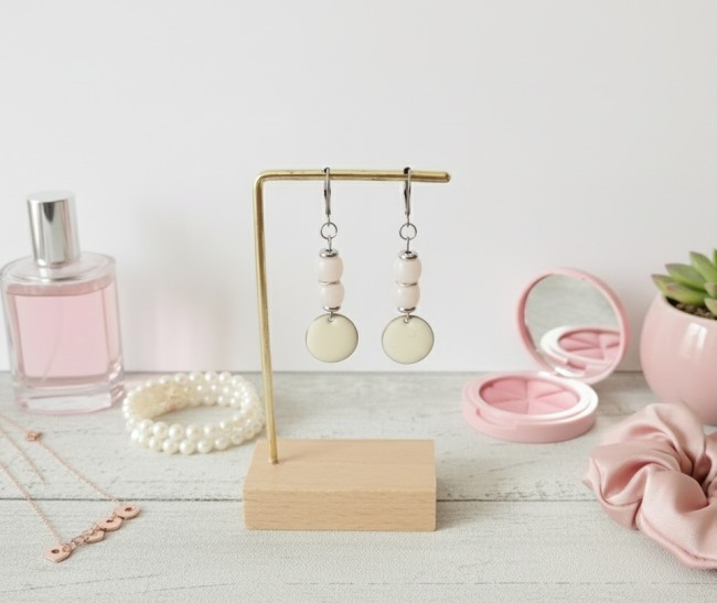 Boucles d'oreilles acier inoxydable et pendentif blanc