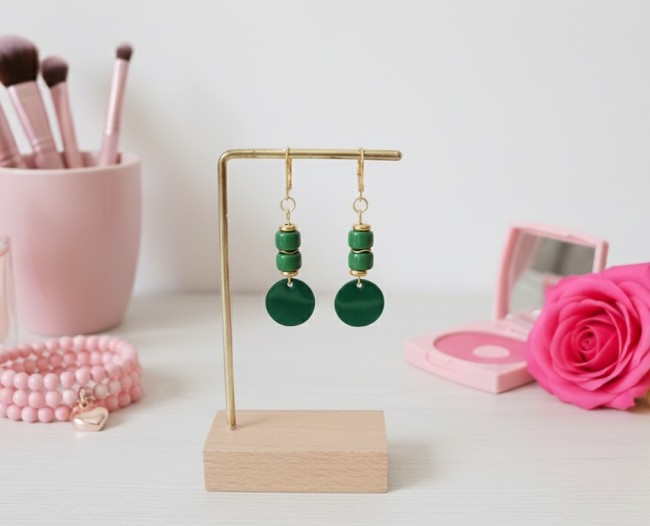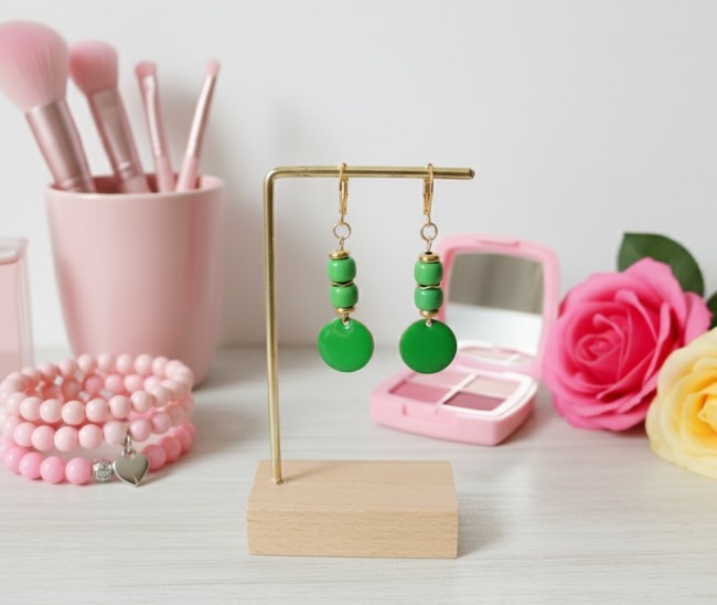 Kit boucles d'oreilles pendentif métal et perles colonnes vert clair