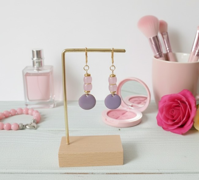 Kit boucles d'oreilles pendentif métal et perles colonnes lilas
