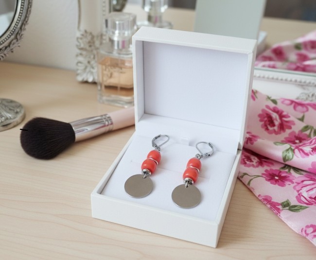 Boucles d'oreilles acier inoxydable et pendentif corail