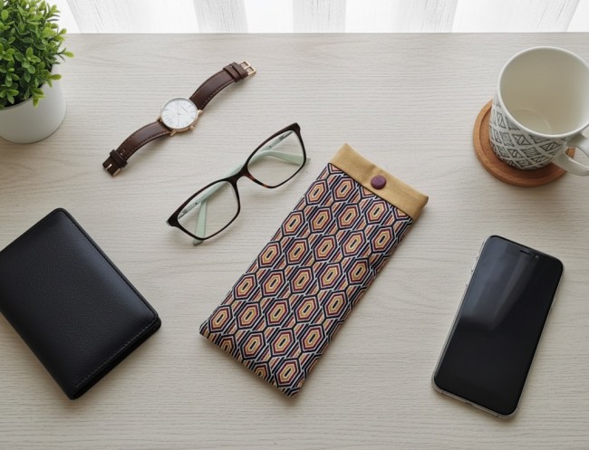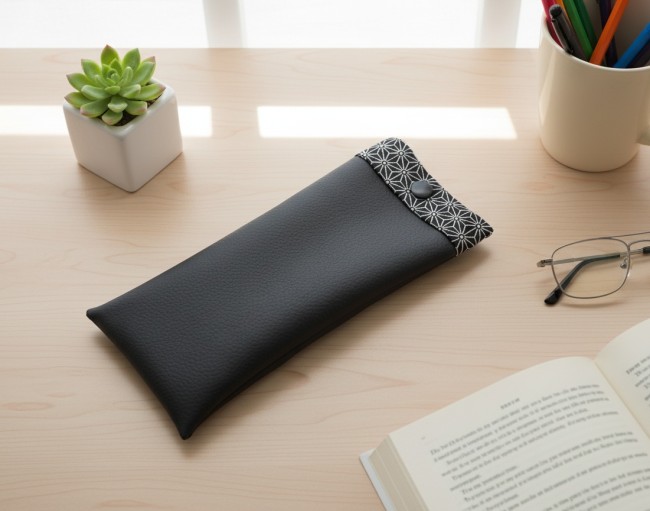 Etui à lunette en simili gris argenté et tissus coton - LIQUIDATION STOCK