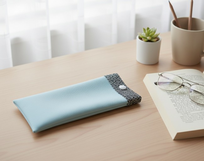 Etui à lunette en simili bleu ciel et tissus motifs fleurs