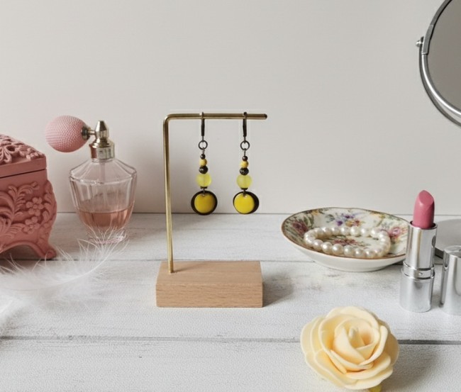 kit boucles d'oreilles apprêts bronze et perle en verre moutarde imitation jade