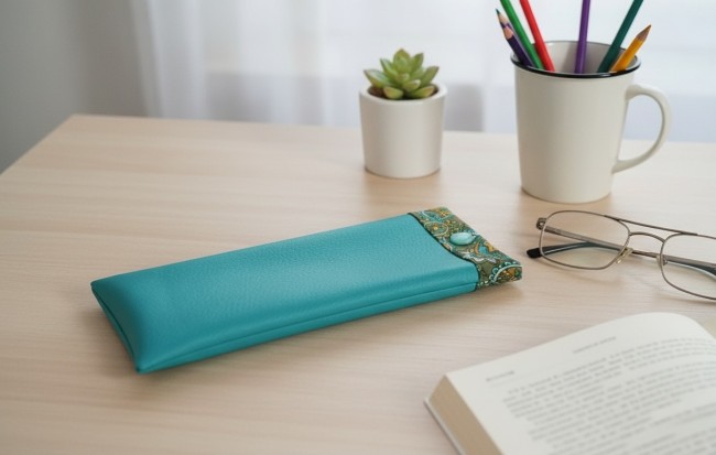 Etui à lunette en simili cuir vert turquoise - LIQUIDATION STOCK