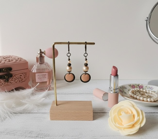 Boucles d'oreilles apprêts dorés et perle rose brillante