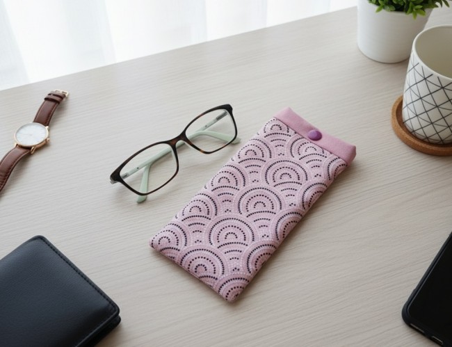 Etui à lunette en simili rose et tissus coton imprimé fleurs